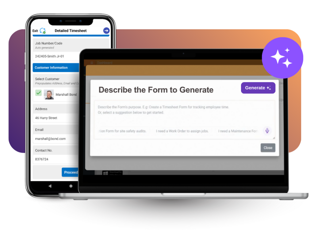 Instantly create a robust form by simply describing what you need using text or voice. Our AI Form Generator provides a powerful starting point with pre-configured fields, dramatically reducing setup time so you can deliver solutions faster.
