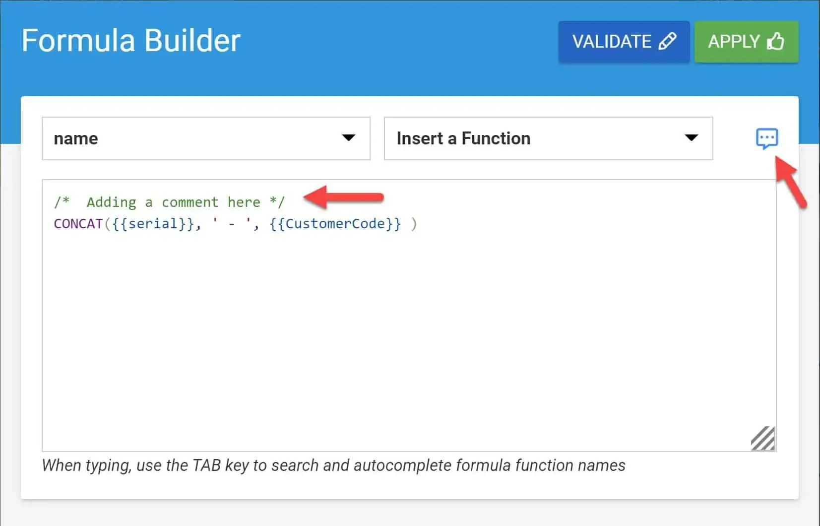 Add Comment Function In Formula Builder